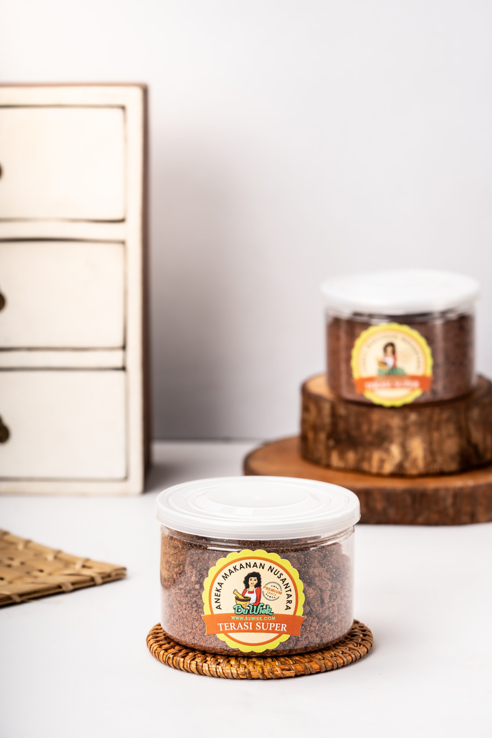 Bu Wiek menawarkan aneka produk pilihan seperti Abon Sapi, Sambal Pecel, Kering Tempe, Kering Kentang dan Aneka Cemilan khas Nusantara